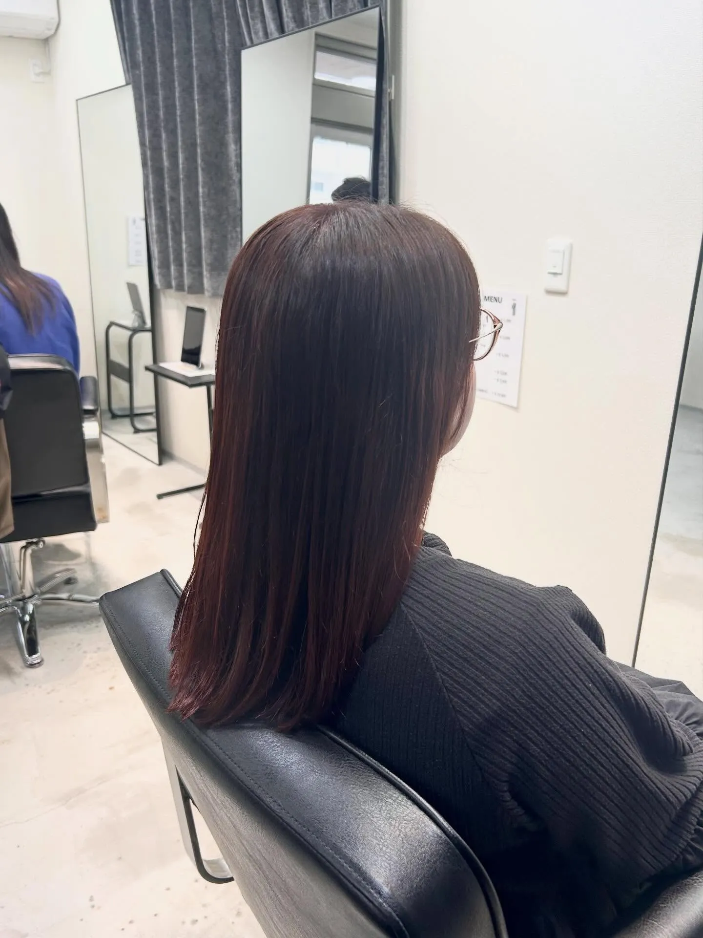 ストレートベースのスタイルなので、カラーのツヤ感がより引き立ち、髪も綺麗に見えます◎