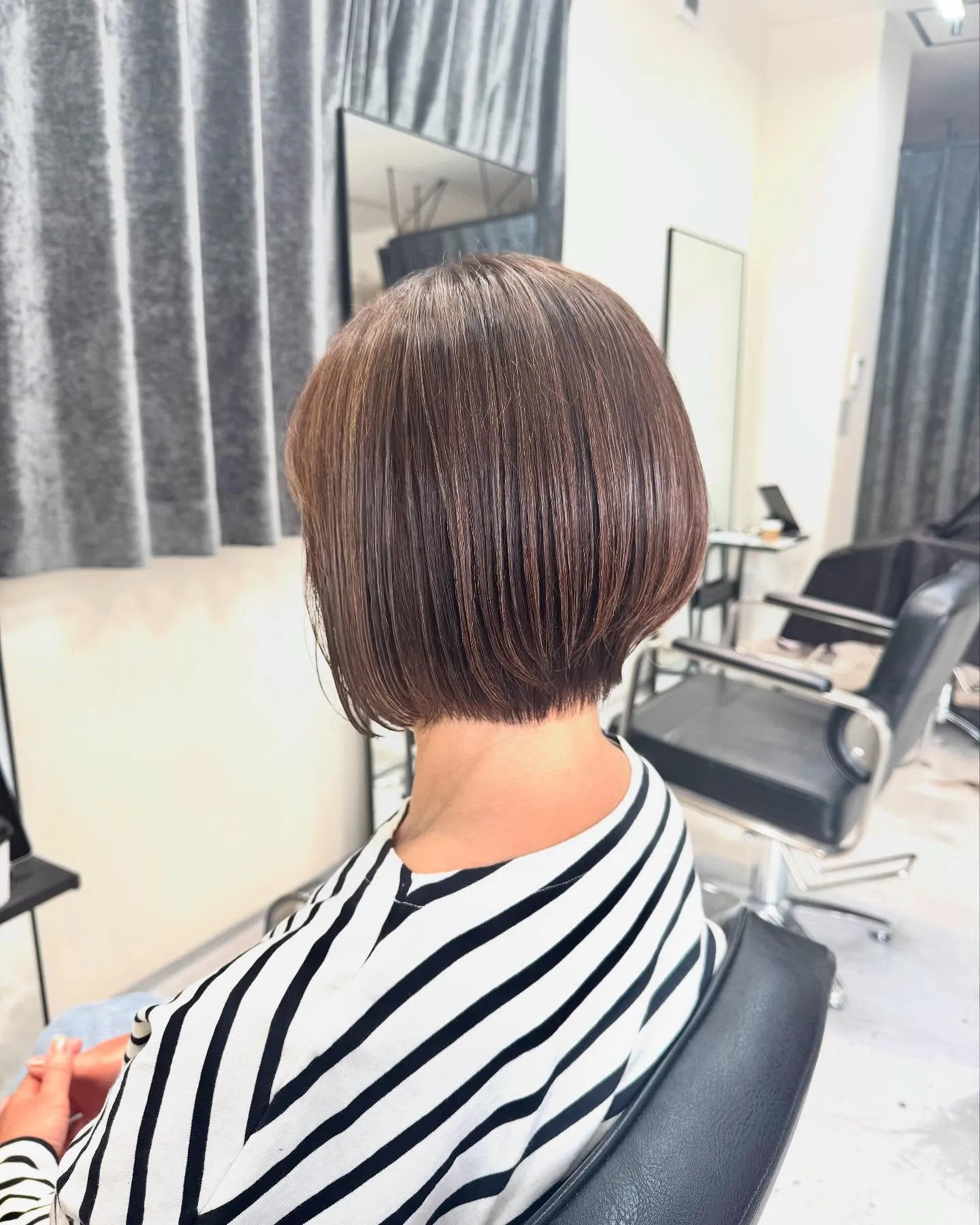 前下がりボブ🤩 前下がりボブ🤩骨格、髪質、を考えシルエットに拘った前下がりボブおさまりもよくお手入れもしやすくおすすめです🙆🏽首元がスッキリするので春夏にむけていかがですか?🤩是非ご相談ください🙇🏽♂️Salon1では…