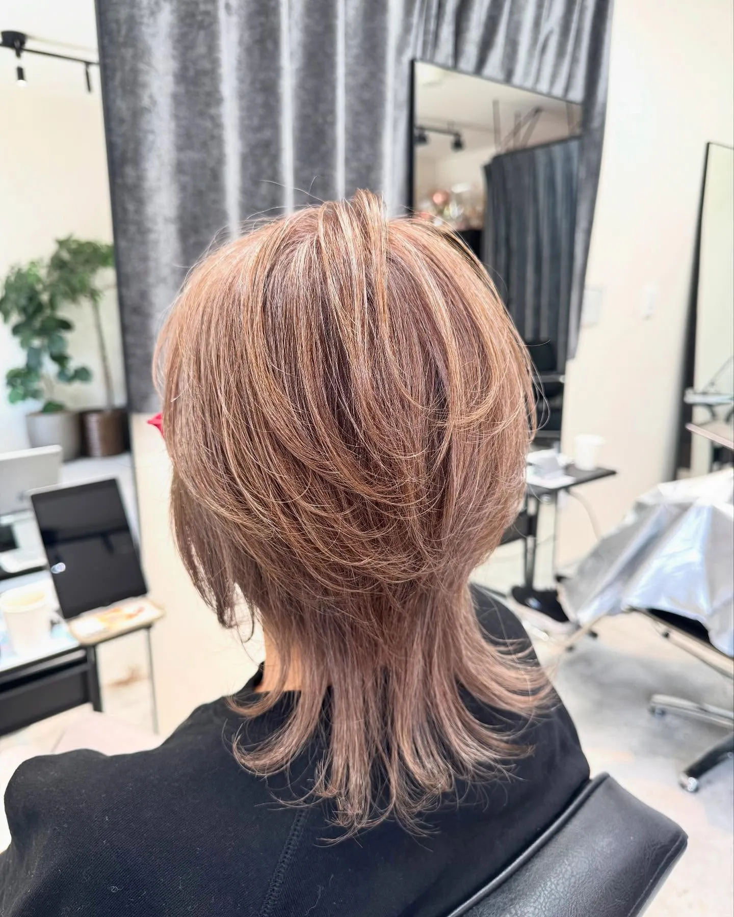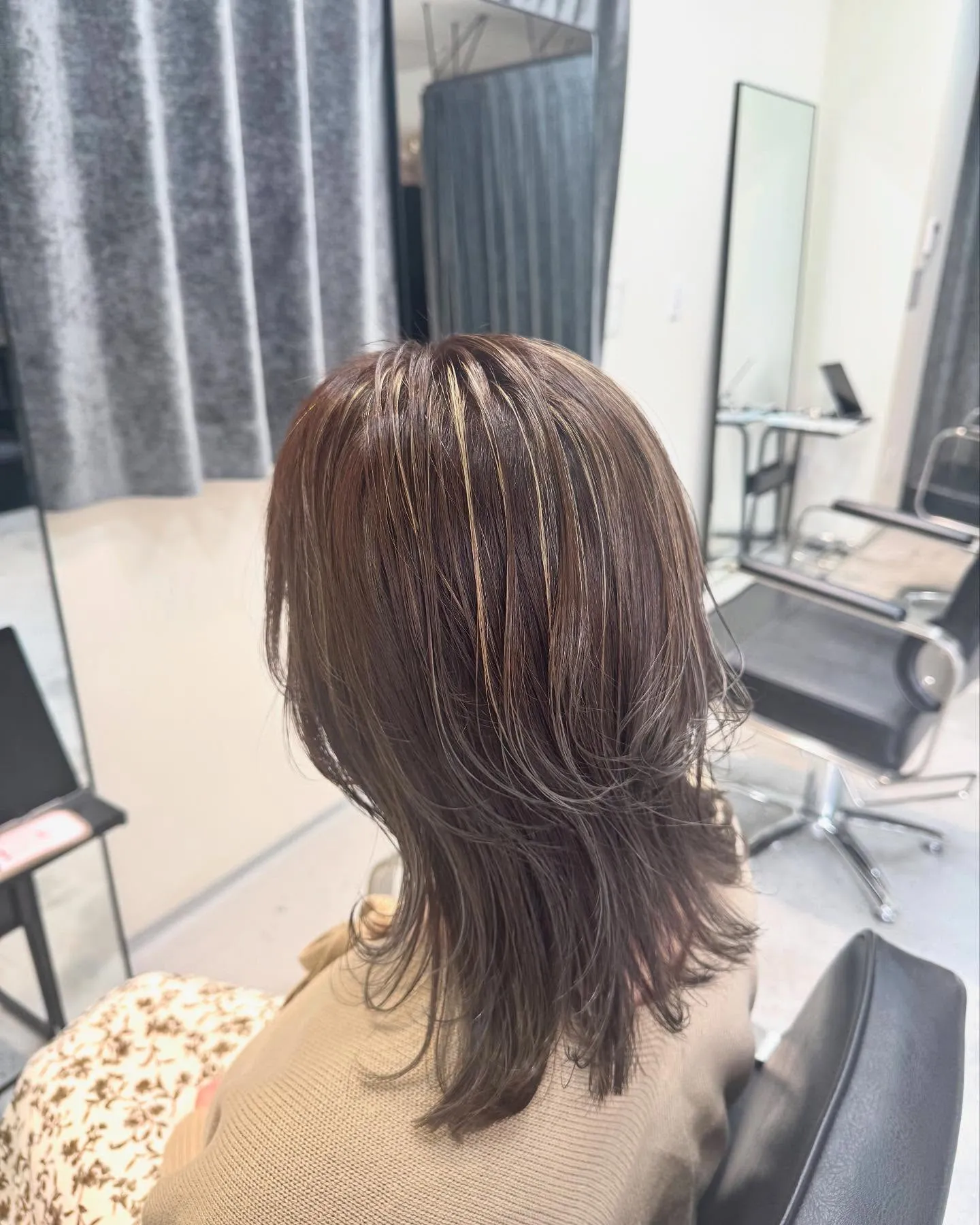 ウルフレイヤー🐺 ウルフレイヤー🐺骨格、生え方を見ながら拘りのカット後頭部のボリューム感もでやすく毛流れもつきやすいので立体ヘアにおすすめ🙆🏽ヘアカラーは白髪ぼかしをしながら明るく染めることで伸びてきても気にな…