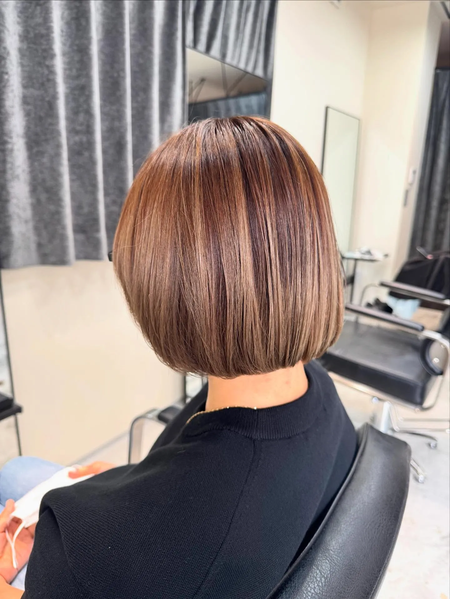 コンパクトショート🤩 コンパクトショート🤩顎ラインでカットし、襟周りはスッキリ頭の丸みがでやすく洗い流さないトリートメントなどをつけるだけでセットできます🙆🏽ヘアカラーは明るめにすることで軽やかな印象に🙌白髪染めや…