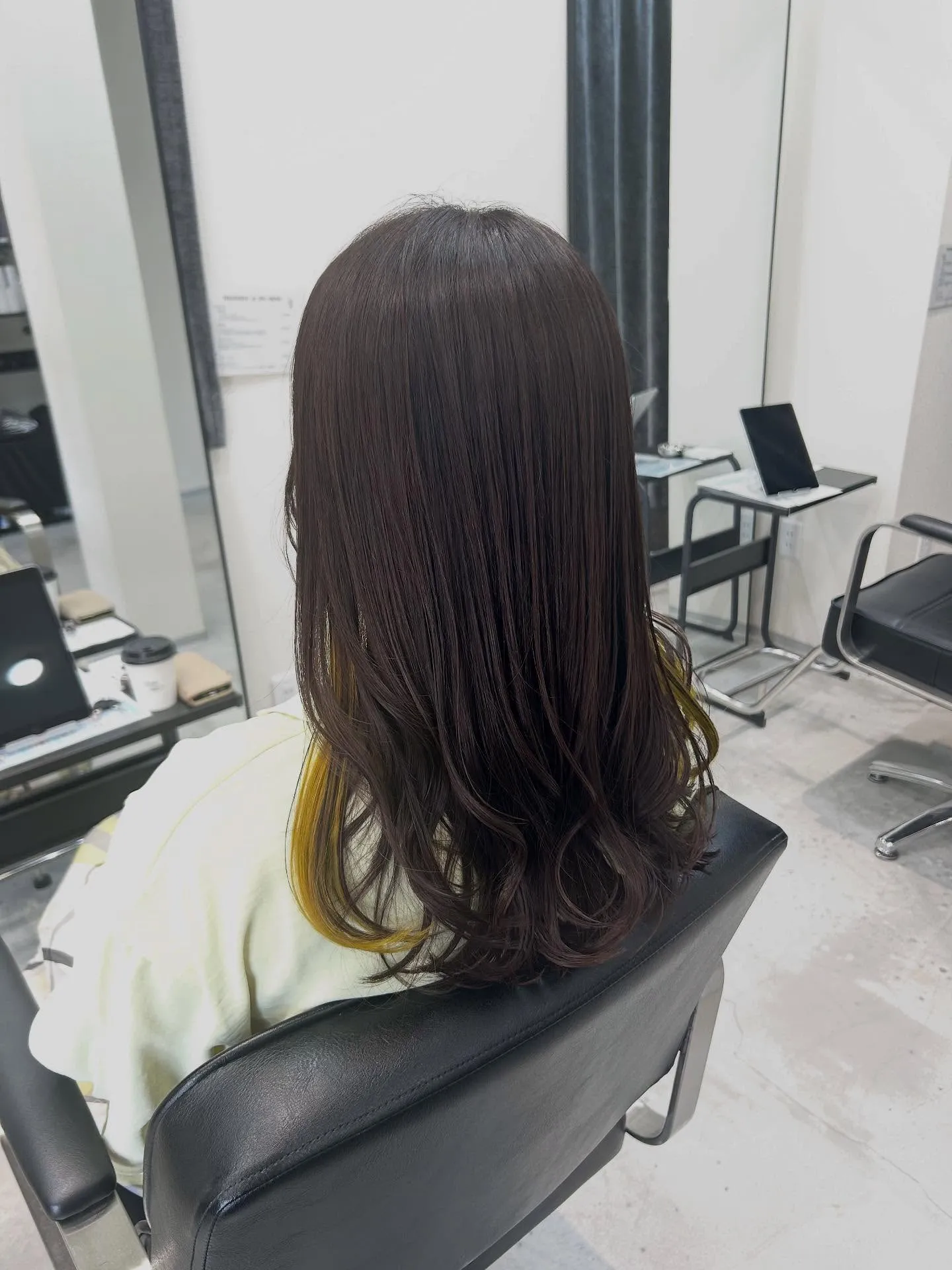 推し色イヤリングカラー 推し色イヤリングカラーグレー×イエローの最強コンビ✨️巻くとふわっと見えるインナーカラーが可愛い!♥落ち着いたグレーカラーに、耳元からちらりと覗くビビッドなイエローのインナーカラーをプラス。巻…