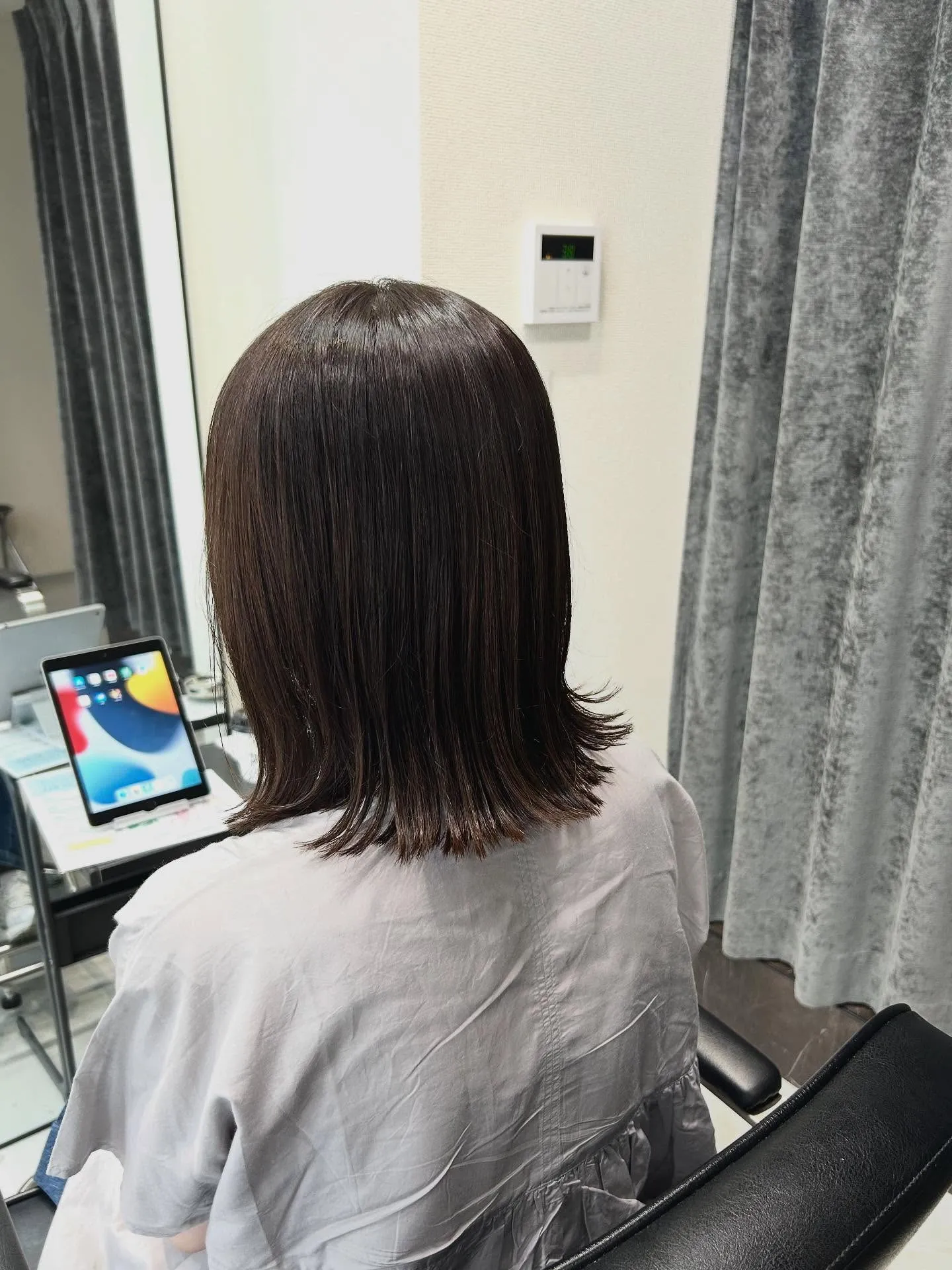 透明感ブルーブラック 透明感ブルーブラックほどよく重みを残したカットで、毛先までまとまりのある印象に。日々のお手入れもしやすくなります。顔まわりの後れ毛もつくってあるので結んだ時雰囲気かわります。自然光や室内の…