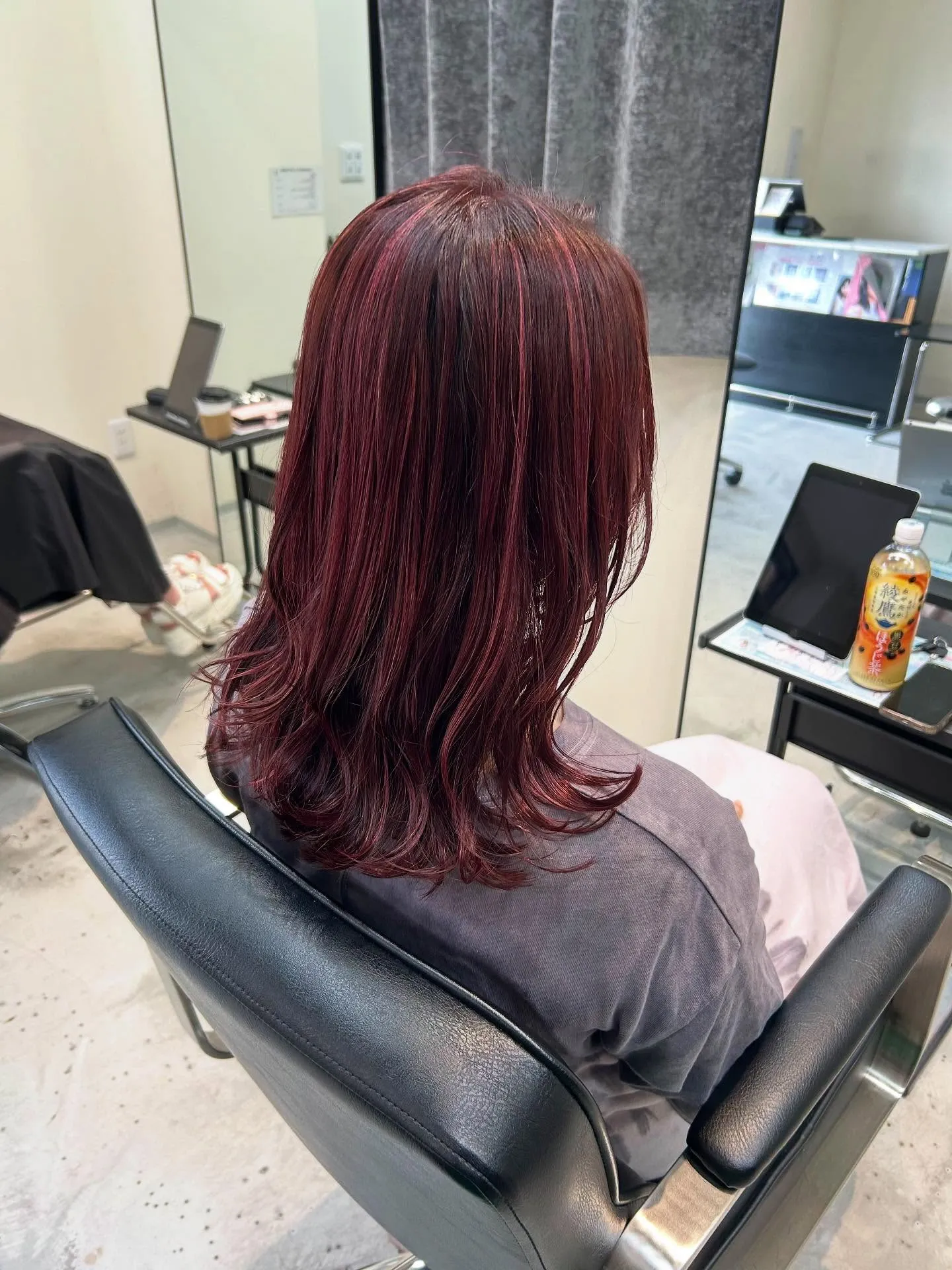 ピンクハイライト🩷ラズベリーブラウンをベースにピンクのハイライトをON♪ツヤ感たっぷりのラズベリーカラーで、室内では大人っぽく、外では太陽光で透け感が際立つ2wayカラーです✨️・ハイライトで立体感…