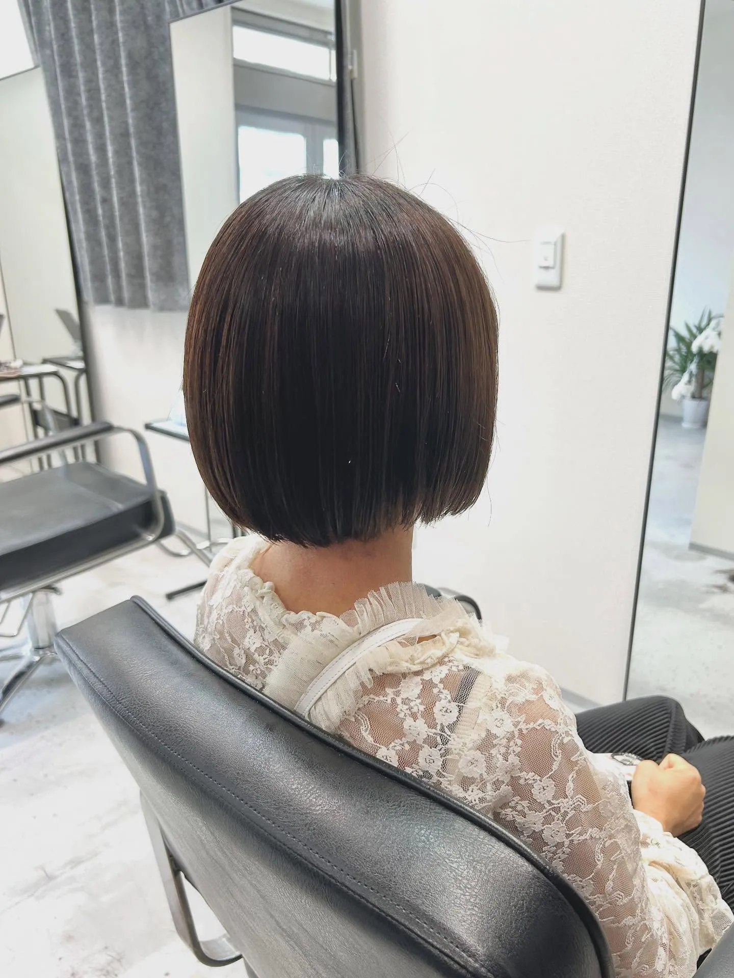 艶ボブ内側に自然に収まるカットラインなので、毎日のセットがとってもラクです!丸みと艶を意識すると、上品で女性らしい雰囲気が簡単に叶います♡カラーも赤みを抑えたブラウングレージュで艶と柔らかさ…