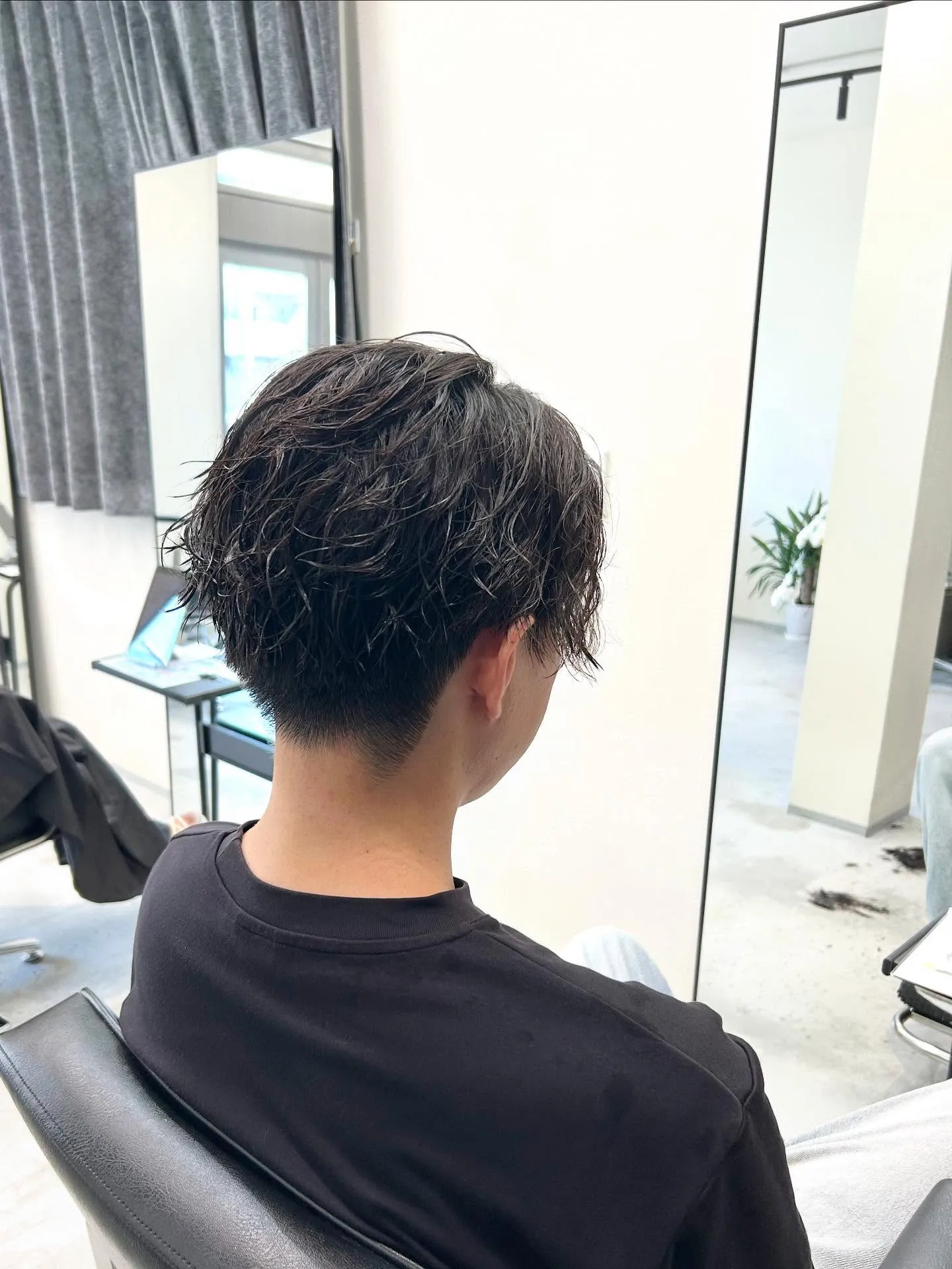 ナチュラルパーマ無造作な動きでこなれ感アップ襟足スッキリ、トップは柔らかい束感で爽やかにジェルやムースで濡れ感を出せば大人っぽく、ワックスで軽く揉み込めばカジュアルな印象に。セット次第で印…