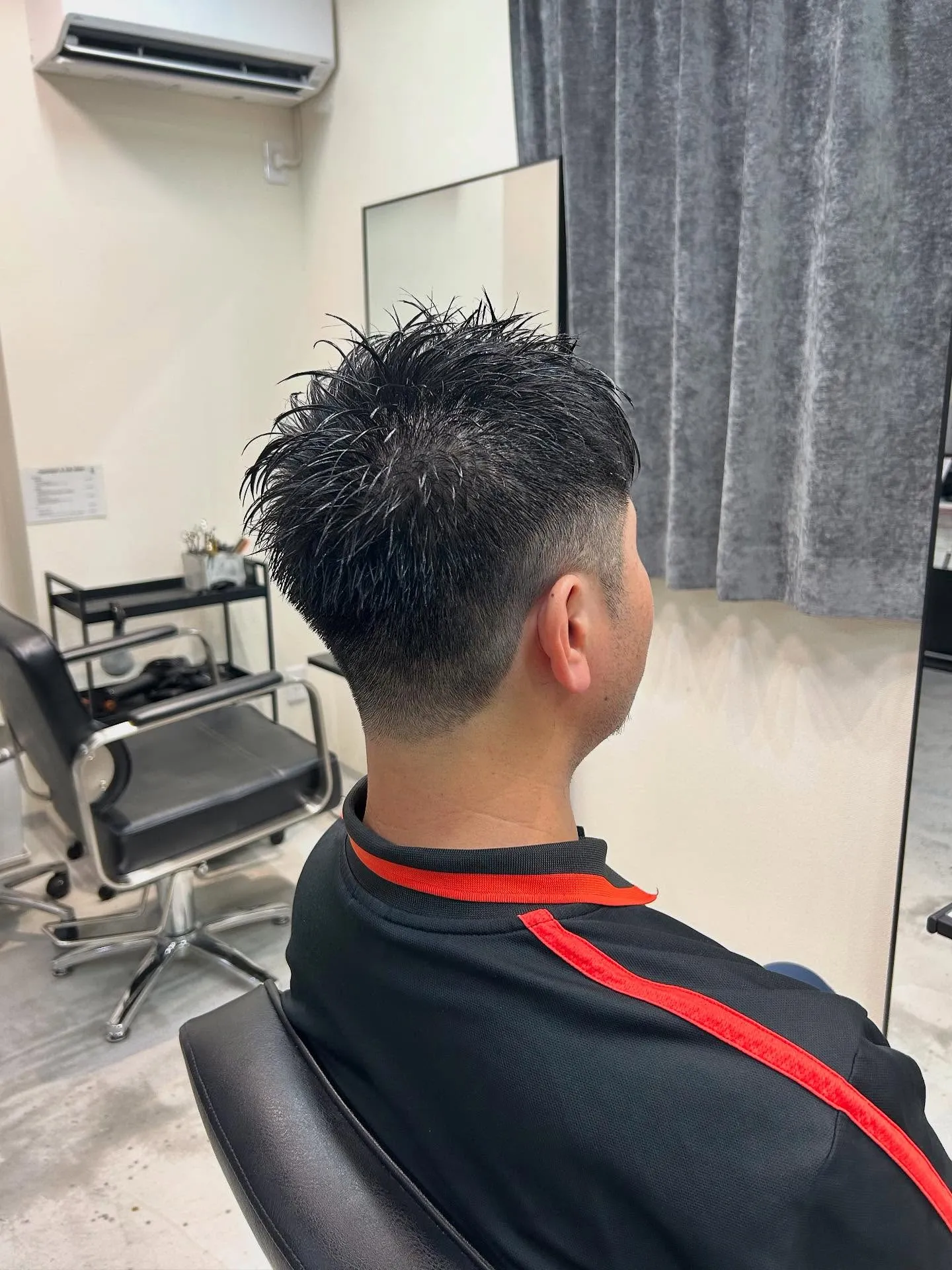フェード×ショート襟足からサイドにかけてしっかりグラデーションを入れ、トップには適度な長さを残すことで、メリハリのあるシルエットに仕上げました✂︎ジェルでウェットに仕上げると、よりシャープでク…