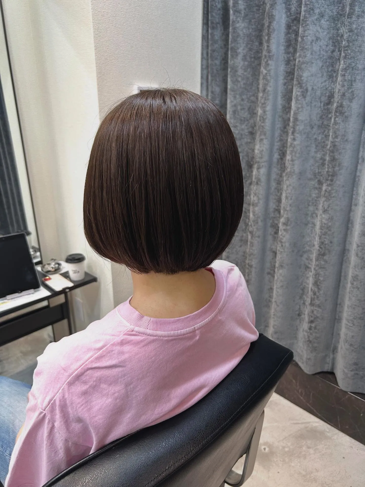 ミニボブ自然な丸みのあるシルエットとナチュラルなツヤ感で、上品さと可愛らしさの両方を叶えたミニボブ♡赤みを抑えたアッシュベージュで柔らかい印象に🌸髪質に合わせたコタのシャンプーを使用していく…