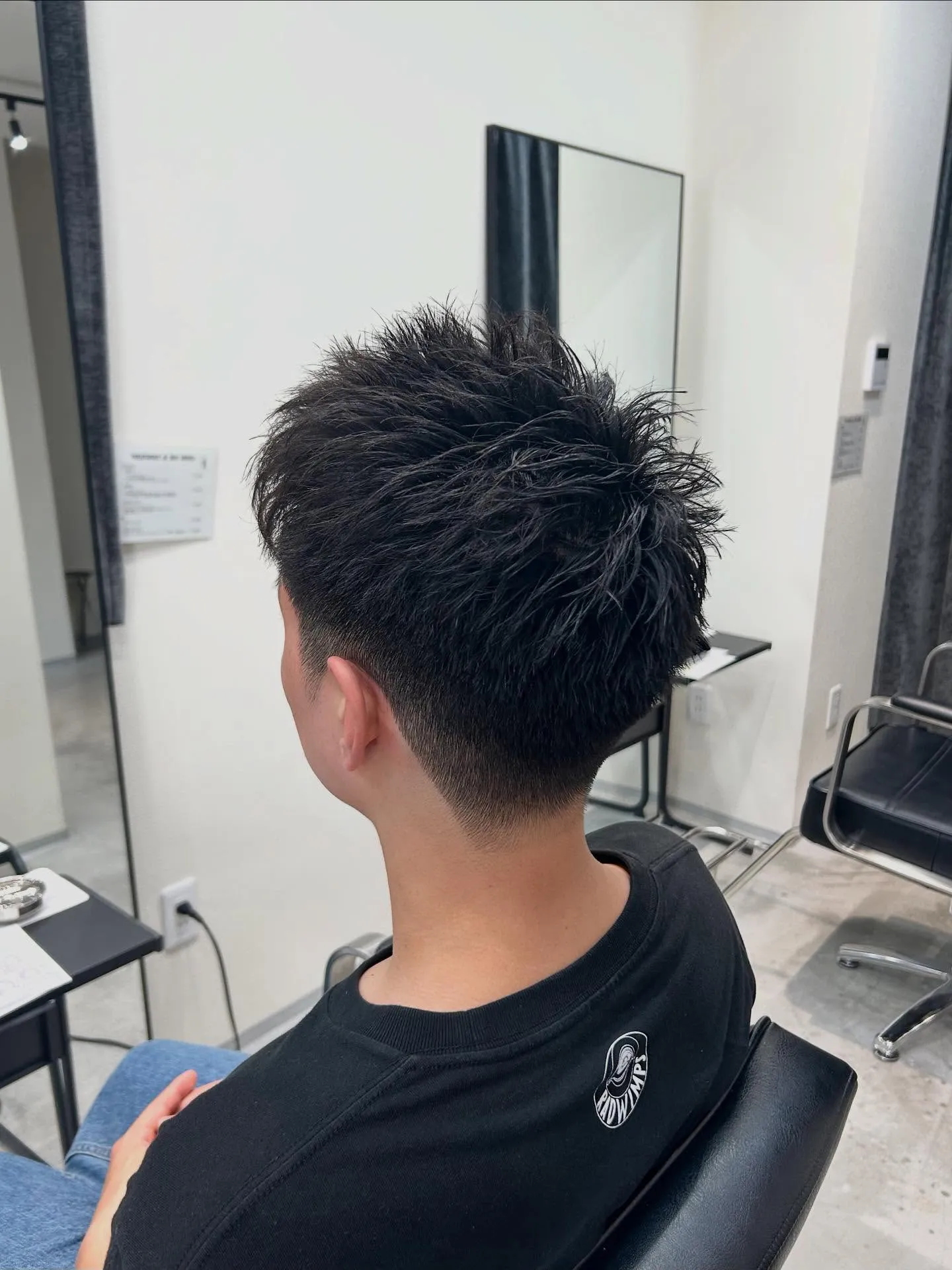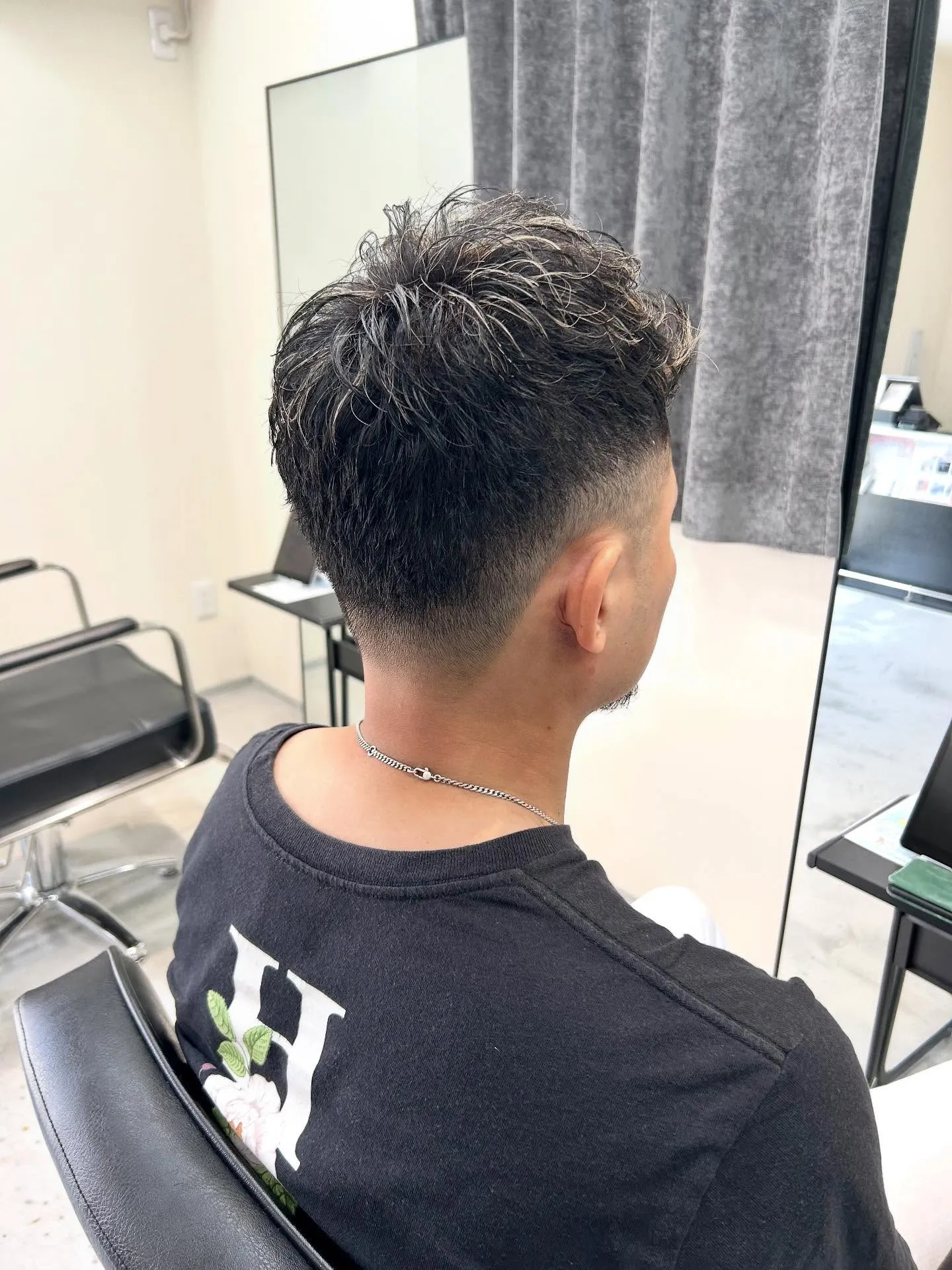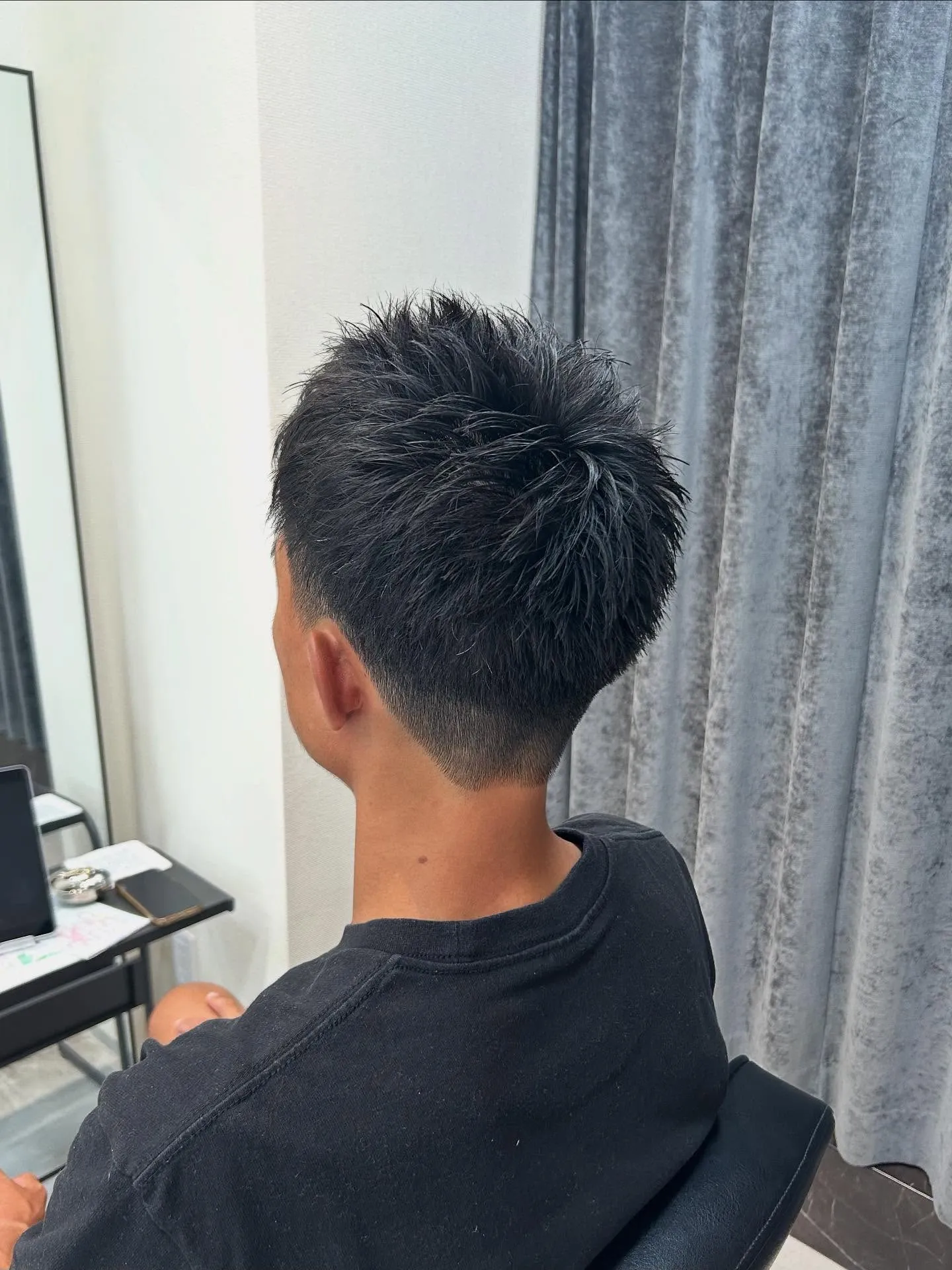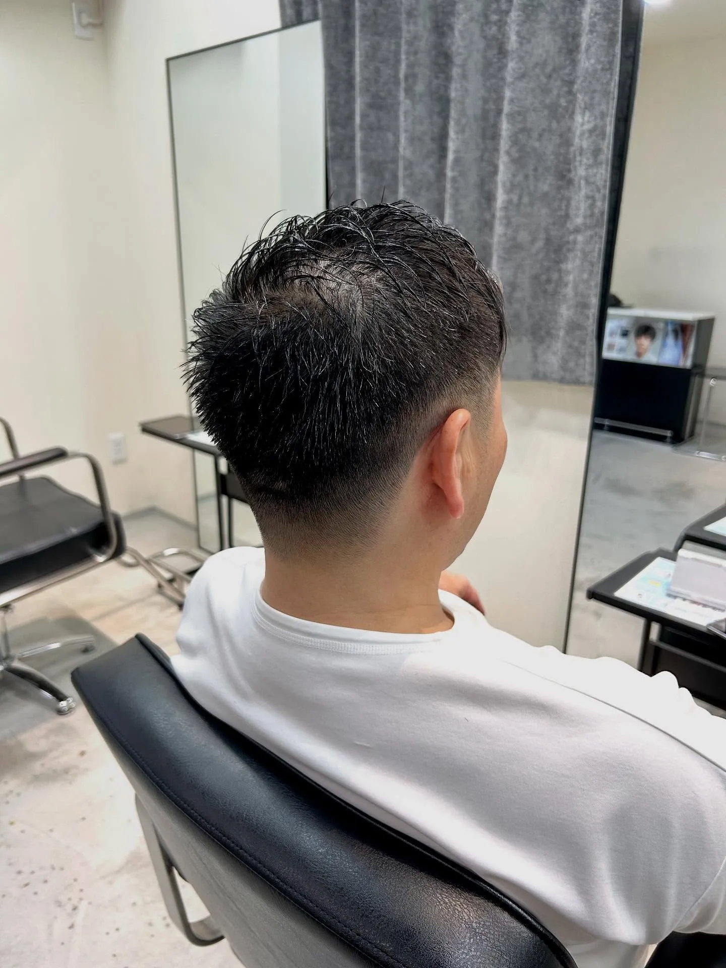 ツーブロックショートスタイル ツーブロックショートスタイルサイドは4ミリのツーブロックに。スッキリとしたフェードショートスタイル。サイドから襟足にかけてグラデーションで刈り上げることで、清潔感とシャープさを両立しています…